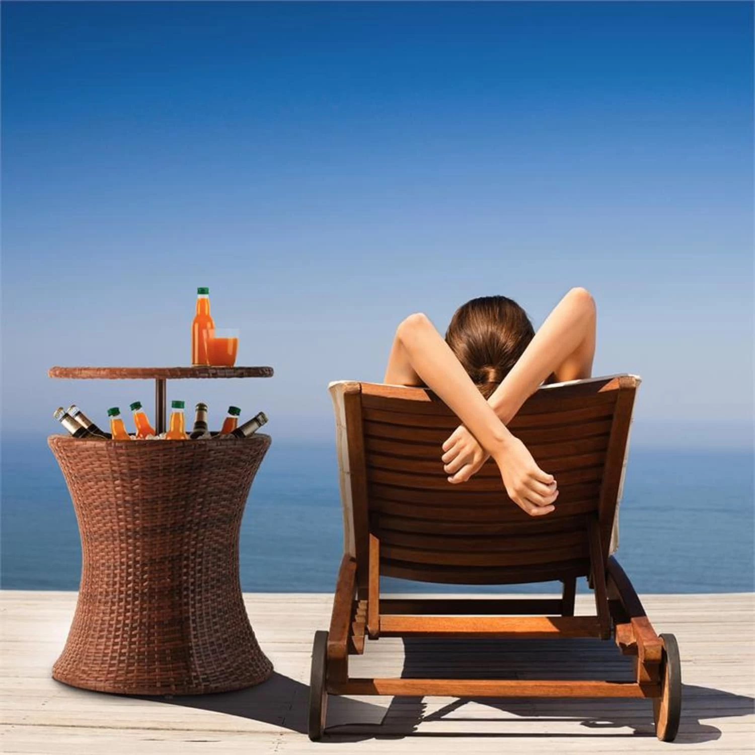 Beerboy Gartentisch Getränkekühler Ø50cm Polyrattan Bicolor Braun