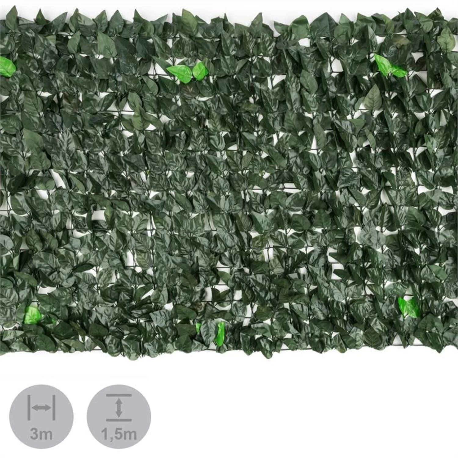 Schnell und unkompliziert wird der 3 m lange und 1,5 m hohe Sichtschutz einfach an den zu verdeckenden Geländern, Brüstungen oder Zäunen entlang ausgerollt und mit Flexbindern (im Lieferumfang enthalten) sicher befestigt. Ein dichtes, grünes Kleid aus rund 2700 Blättern versperrt neugierigen Nachbarn und Passanten den Blick und ziert gleichzeitig den Ruheort. Zusätzlich dienen die Blätter als Windfang und dämpfen Straßenlärm, was für zusätzliche Entspannung sorgt.