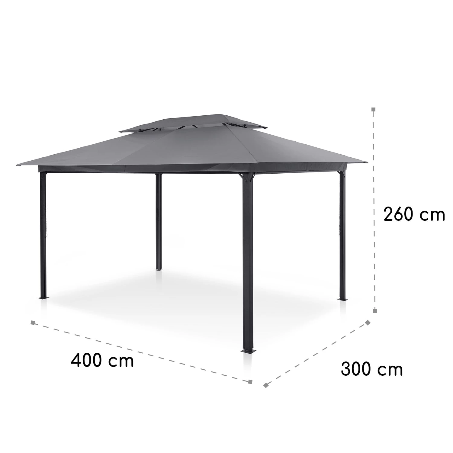 Jetzt angenehme Stunden mit Freunden und Familie im Garten verbringen: Mit einer überdachten Fläche von 3 x 4 Metern bietet der Grandezza Cortina viel Platz zum Entspannen unter einem üppigen Dach aus 180g Polyester mit wasserabweisender und schimmelresistenter Beschichtung. Der 6 x 6 cm starke Rahmen aus Stahl garantiert zudem maximale Stabilität und ist dank seiner Pulverbeschichtung vor Rostbildung geschützt.