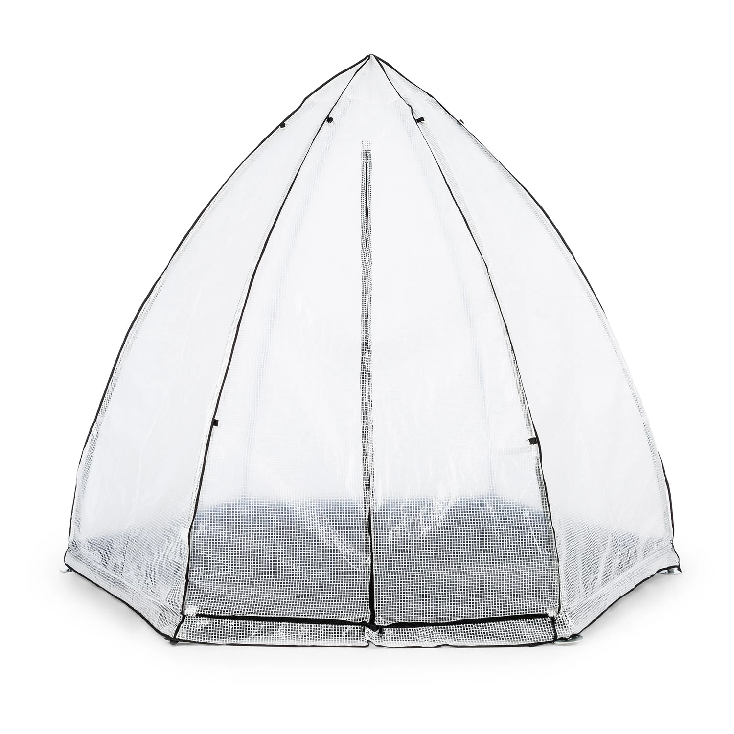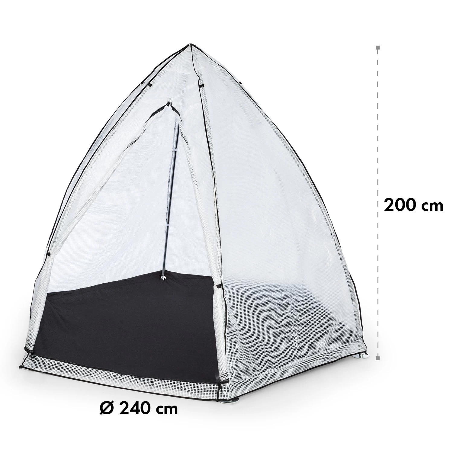 Das sechsseitige Waldbeck Greenshelter M Folienzelt bietet im Sommer wie im Winter ein ideales Plätzchen zur Aufzucht witterungsempfindlicher Pflanzen. Im Handumdrehen ist das stabile Gerüst aus vollverzinktem, 25 mm dickem Stahlrohr aufgebaut und die stabile Folie aus PVC-Gitternetz aufgespannt. Extreme Widerstandsfähigkeit zeichnet die Folie aus: Reißfest, UV-beständig, lichtdurchlässig und wasserdicht trennt sie das Innere vom Äußeren und schafft eine eigene Schutzatmosphäre für die Pflanzen. So gedeihen Tomaten und Gurken auch im winterkalten Garten und finden im Sommer Schutz vor zuviel Regen – gerade letzteres macht das Greenshelter M perfekt für die eigene Tomatenzucht. Zur Regulierung des Innenklimas, aber auch für einfachen Zugang, verfügt das Gewächszelt über eine aufrollbare Tür- sowie zwei große Fensterklappen. Klett- und Reißverschlüsse sorgen für festen Halt und hohe Langlebigkeit. Damit das Folienzelt auch stärkerem Wind ohne ungewollten Standortwechsel trotzt, wird es direkt mit Erdnägeln und Abspannseilen zum Abspannen geliefert oder kann mit dem Boden verschraubt werden. Für einfachen Standortwechsel oder bei Nichtgebrauch findet es platzsparende Aufbewahrung in der mitgelieferten Tragetasche.