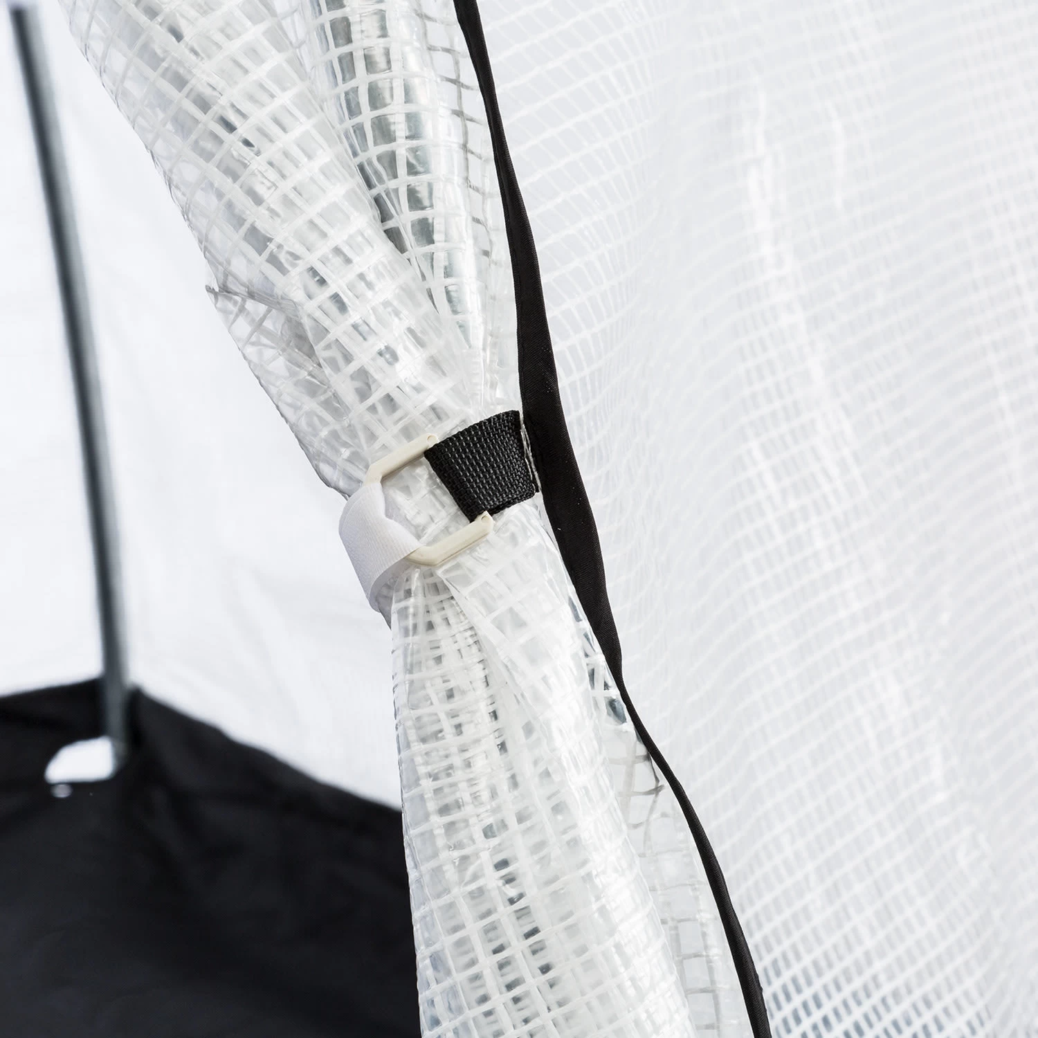 - sicherer Stand auch bei starkem Wind durch Sicherung mit Erdnägeln und Abspannseilen