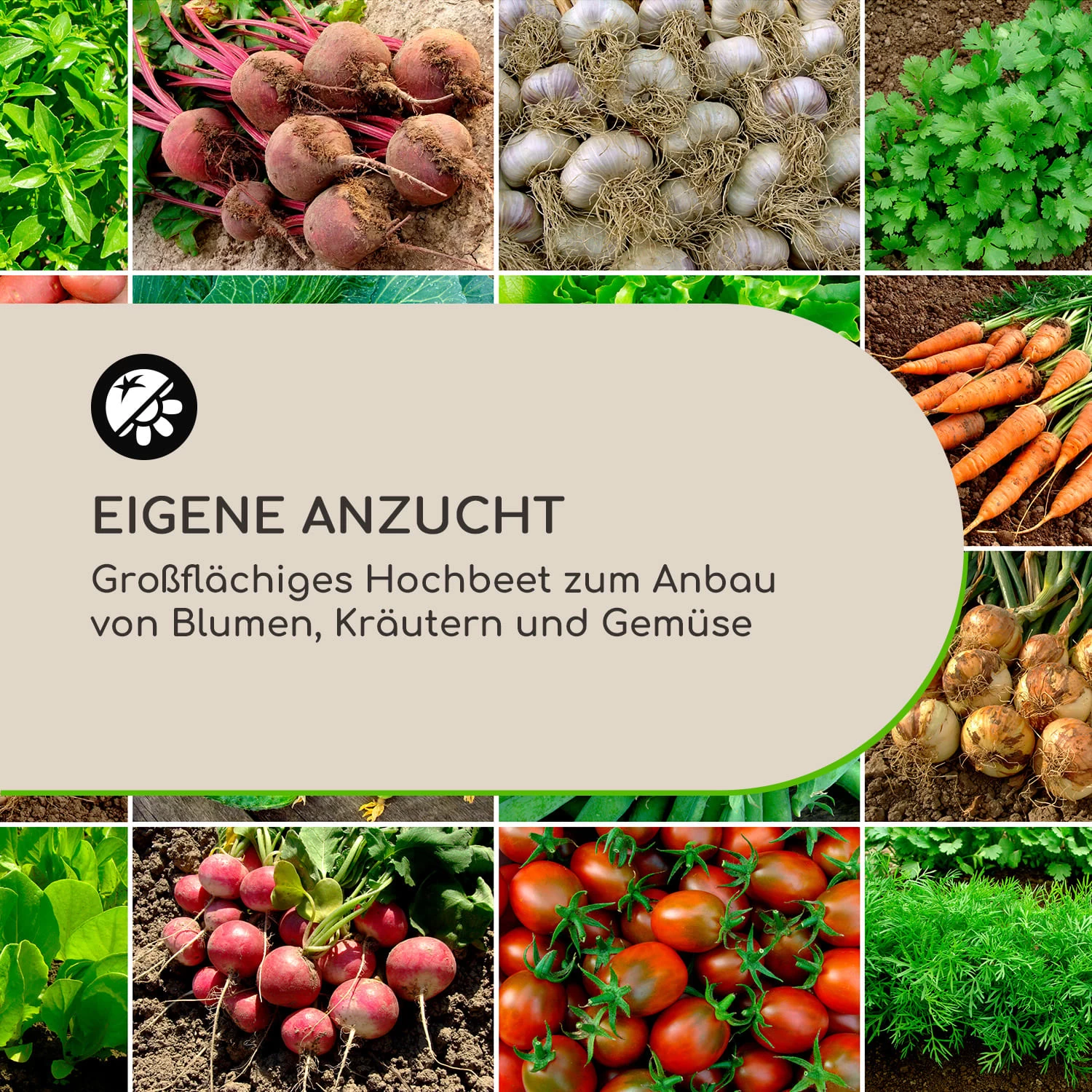 Denn saftige Tomaten, süße Erdbeeren, knackige Zucchini und aromatische Kräuter lassen sich dank optimaler Wachstumsbedingungen spielend leicht heranziehen. Die stabile Rahmenkonstruktion des Gartenbeetes ist aus verzinktem Stahl mit Rostschutz gefertigt und somit sicher gegen Witterungseinflüsse geschützt. So trotzt das High Grow Straight ganzjährig Wind und Wetter. 4 Aluminium-Schutzbalken sorgen zudem für maximale Stabilität der gesamten Konstruktion.