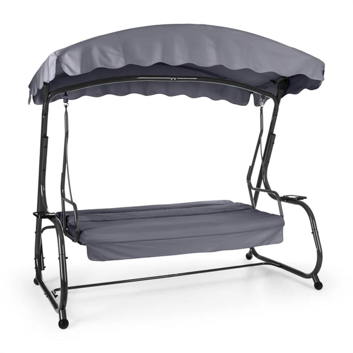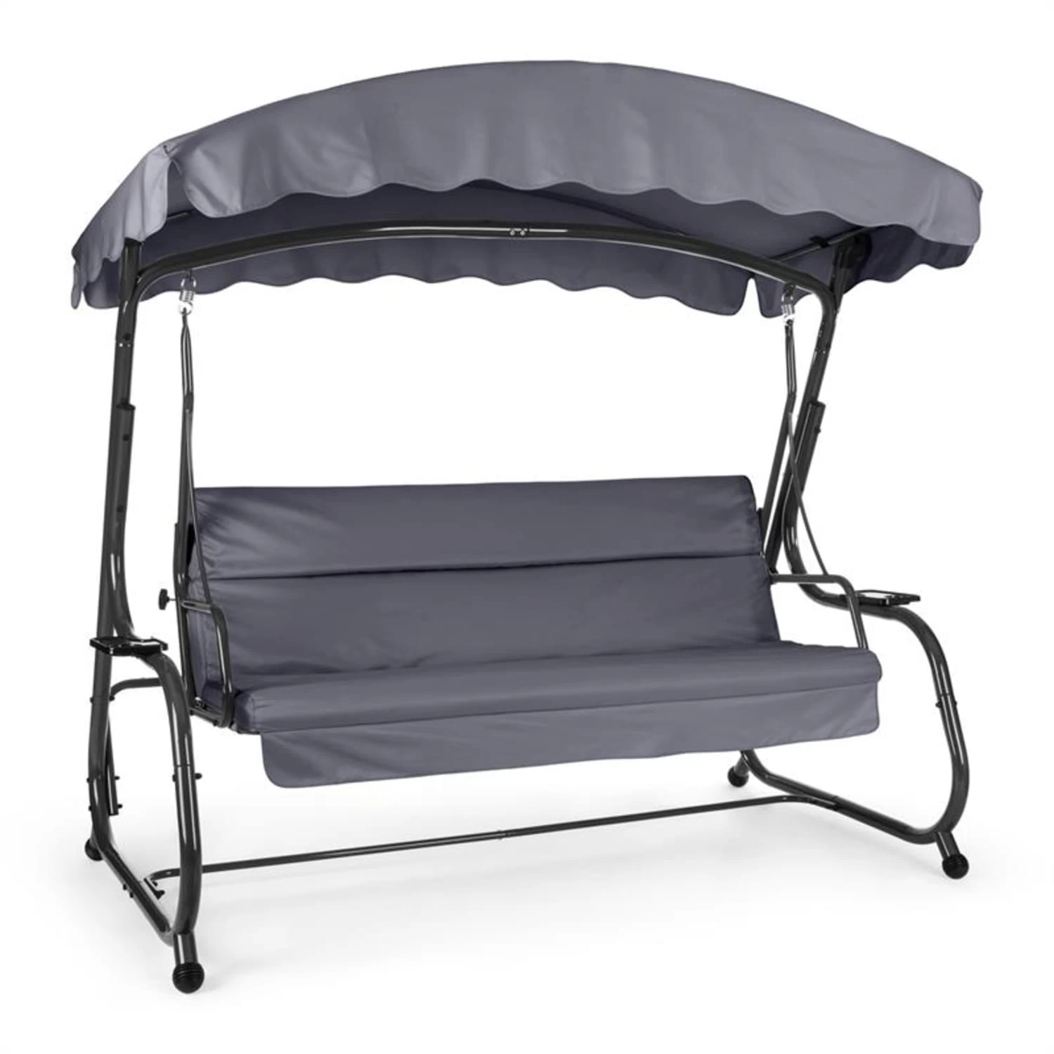 Die Blumfeldt High Society Hollywoodschaukel macht es ganz leicht, gemeinsam den Alltag zu vergessen. Dank der extra breiten Sitzfläche mit 8 cm dicken Polstern schaukeln bis zu vier Personen ganz komfortabel – so genießt man heute gemeinsam! Und wenn man keine Lust mehr zum Sitzen hat, wird die Rückenlehne umgeklappt: Perfektion für das Mittagsschläfchen im Grünen oder zum Kuscheln mit dem Partner. Für weitere Geborgenheit sorgt das große Sonnendach, welches wohltuenden Schatten spendet. Zwei seitliche Getränkehalter verschaffen den nötigen Abstellplatz für kühle Drinks oder leckere Snacks. Auch in puncto Standsicherheit bleiben keine Wünsche offen. Massives, pulverbeschichtetes Stahlrohr, rostfreie Edelstahlfederaufhängungen und vollverzinkte Schrauben sorgen für eine hochstabile Konstruktion.