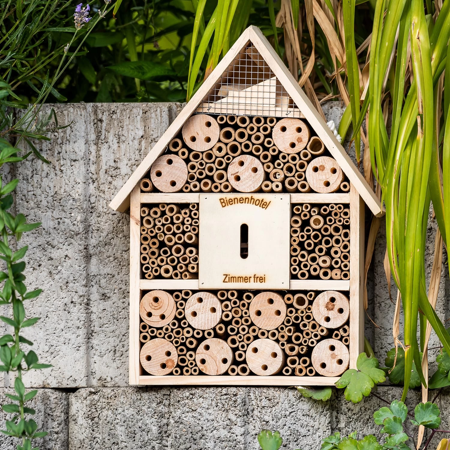 Jetzt wird dein Garten endlich lebendig! Das Insektenhaus mit Spitzdach von blumfeldt wird kunsthandwerklich aus Holz und Bambus gefertigt. Mit seinen diversen Abteilungen bietet das Insektenhotel Unterschlupf für Bienen, Schmetterlinge, Wespen, Käfer, Fliegen und mehr. Das Bienenhotel dient als ganzjähriger Lebensraum sowie Brutplatz für allerlei Nützlinge, die der Umwelt zugute kommen.