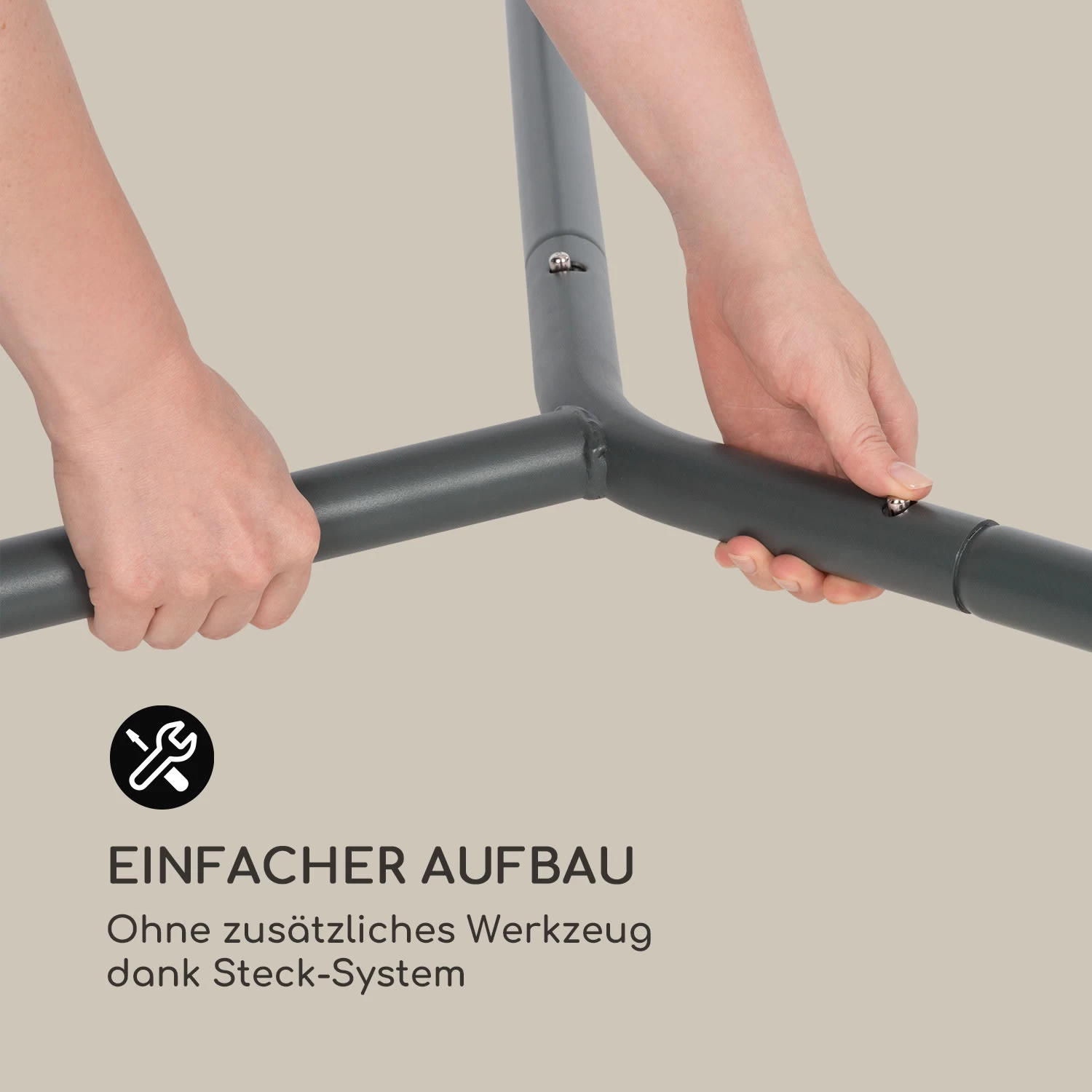 - Maße Stahlrohre: 3,2 cm (Ø)