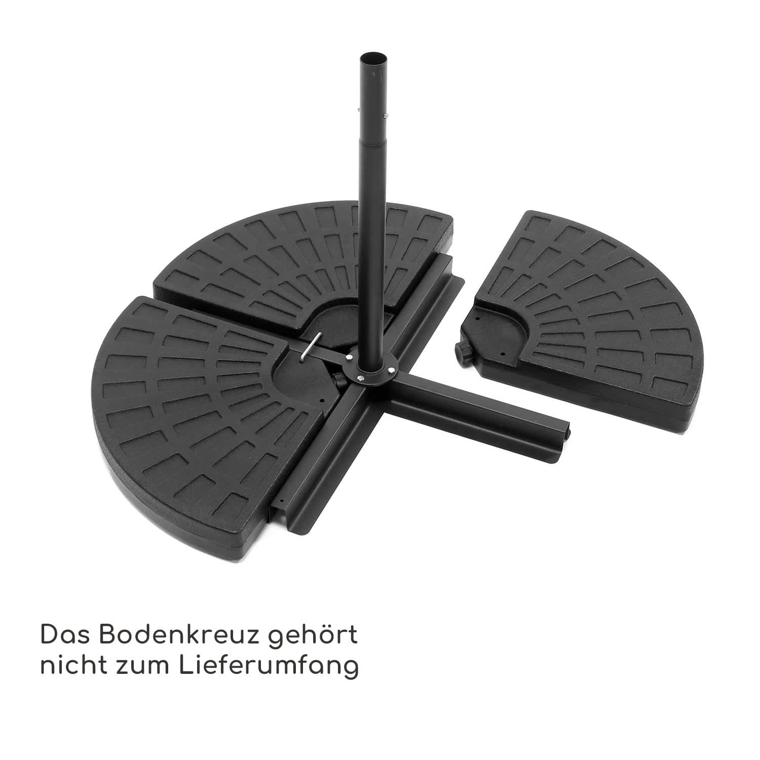 Neben ihrer zuverlässigen Funktion als Beschwerungselemente überzeugen die Sonnenschirmständer-Gewichte auch in Optik und Komfort. Sie passen sich geschickt an das Bodenkreuz deines Schirmständers an und ergeben so einen modernen Sockel. Ein seitlicher Tragegriff macht die Leergewichte zu einem sehr praktischen Sommer-Accessoire.