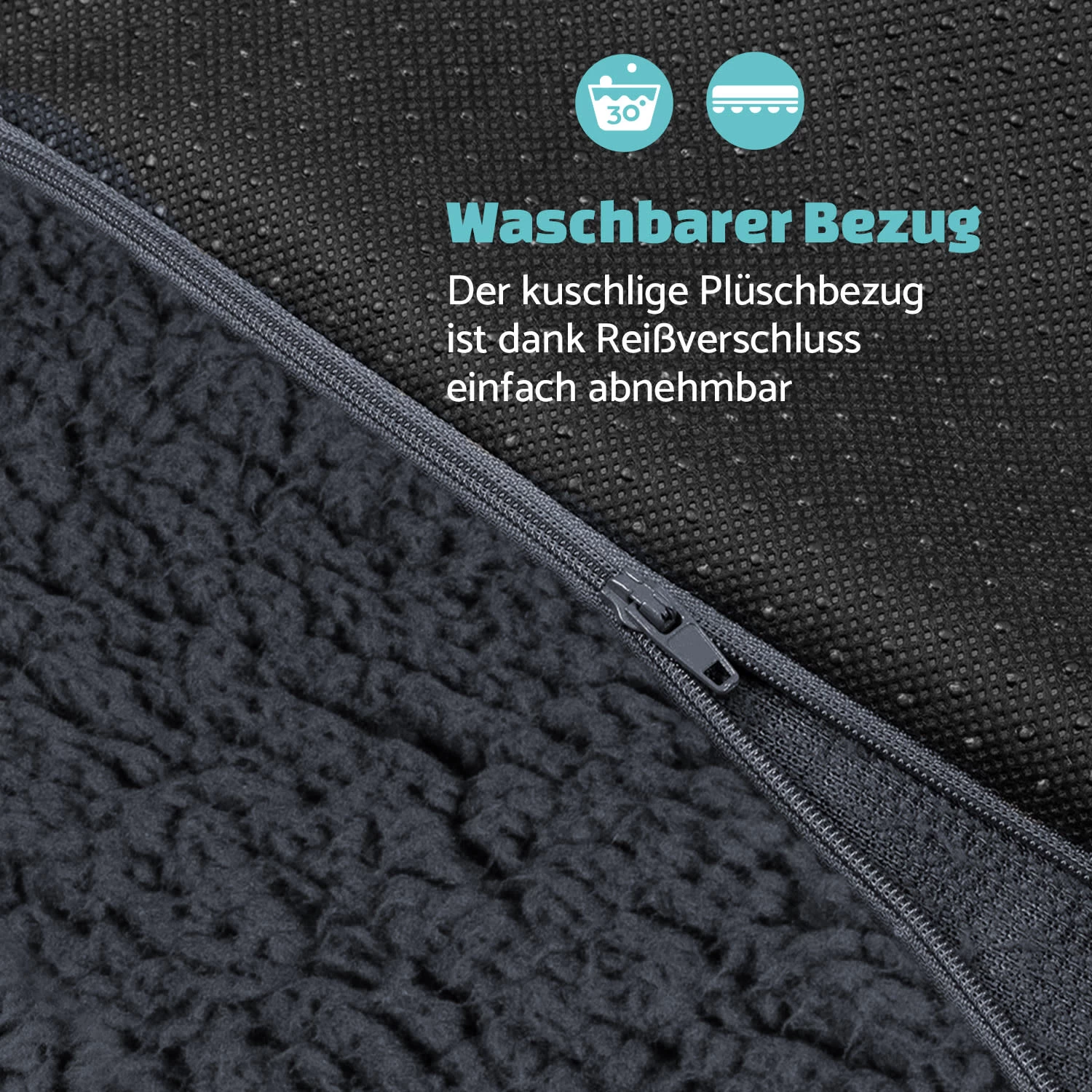 Unser Hundebett aus robustem, hochwertigem Material bietet deinem Haustier eine langlebige Ruhezone. Der abziehbare Bezug ist waschmaschinenfest und kann problemlos bei 30 Grad gewaschen werden. Das Antirutsch-Gewebe an der Unterseite verhindert ungewolltes Verrutschen, sodass einem ausgelassenen Toben im gemütlichen Körbchen nichts im Wege steht.