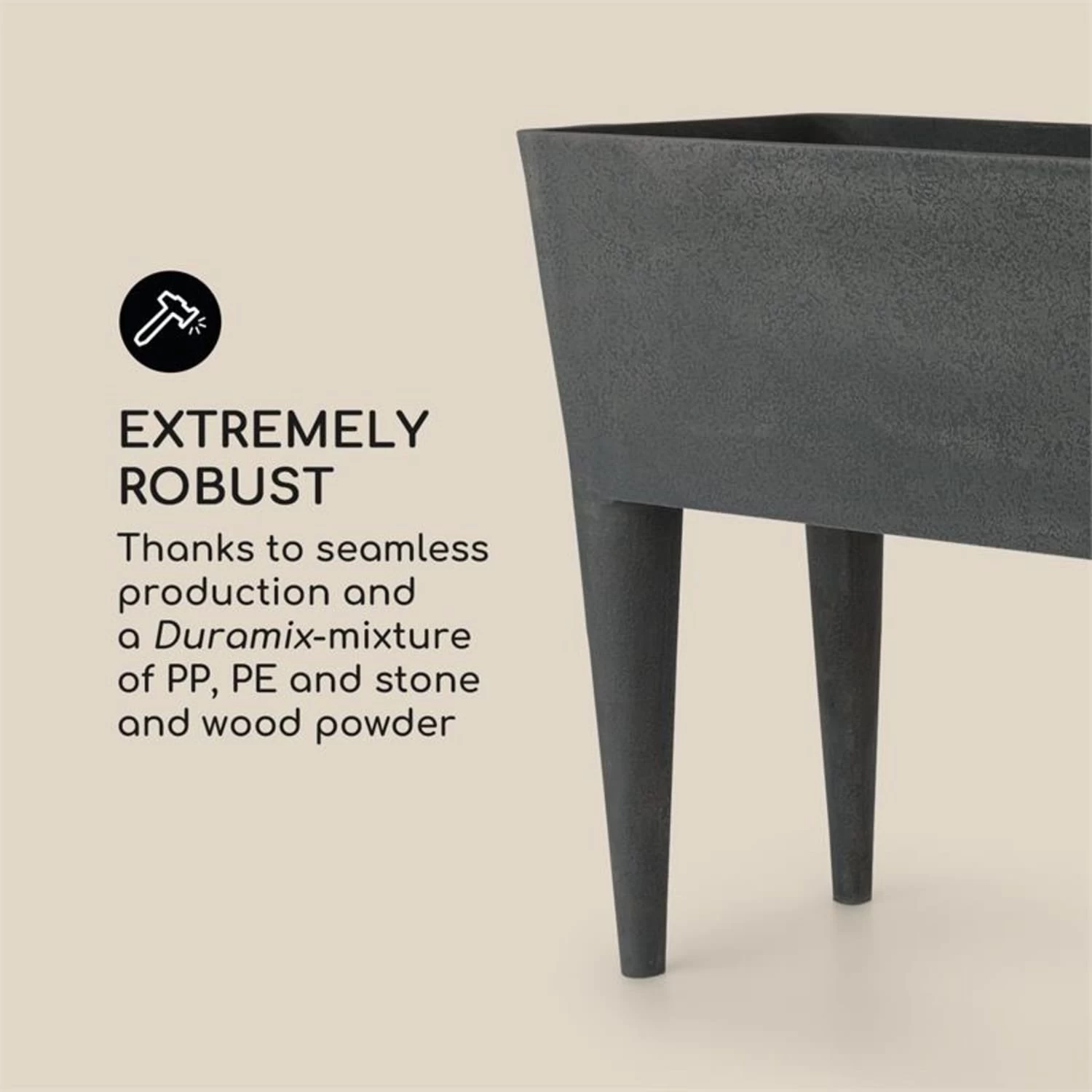 Mit nur 9,5 kg ist das Hochbeet besonders leicht und lässt sich einfach verstellen und transportieren. Die nahtlose Fertigung aus einem Guss erspart darüber hinaus den aufwendigen Auf- und Aubbau. Zusätzlich zu einem UV- und Frostschutz macht die Duramix-Mischung aus PP, PE sowie Stein- und Holzpulver das Mammutgrow Hochbeet zu einem besonders robusten Pflanzbehälter, sodass die Freude am eigenen Anbau lange erhalten bleibt.