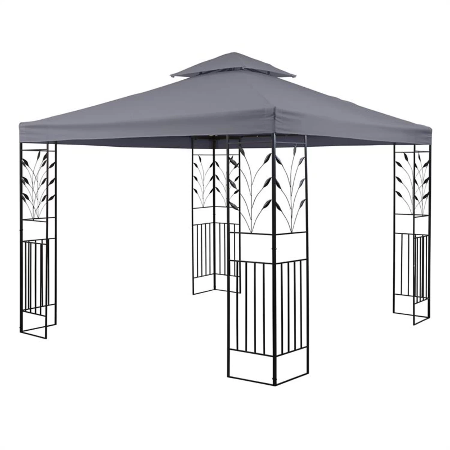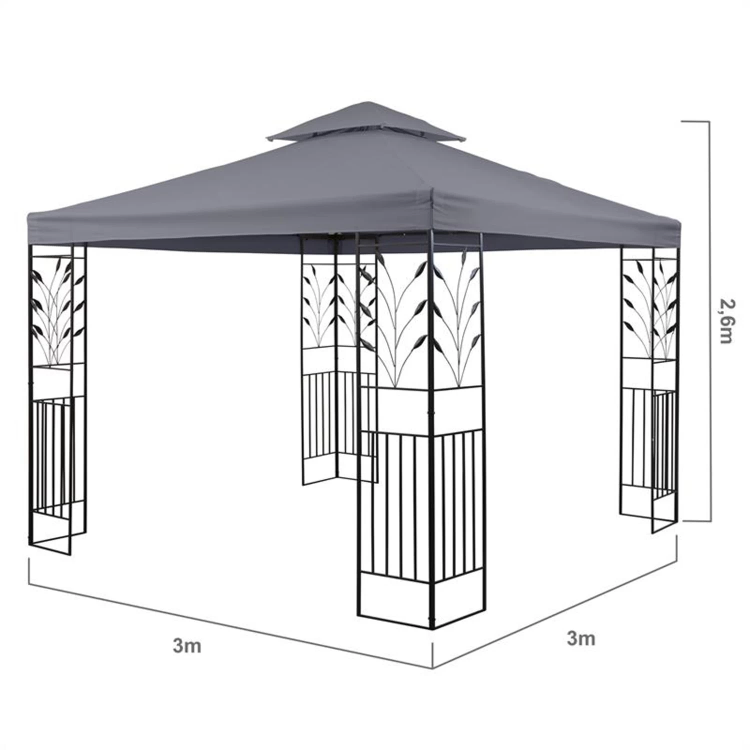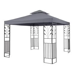 Schön, stabil und flexibel, so muss ein Gartenpavillon sein, damit der Sommeraufenthalt im Garten bei Tag und Nacht zum entspannten Erlebnis wird. Das Blumfeldt Odeon Partyzelt wird Ihre Erwartungen übertreffen: Das 3 x 3 m große Gartenzelt macht mit seinem abgeschrägten Dach, den dekorativen Metallornamenten im Blumendesign nicht nur eine gute Figur. Seine Konstruktion aus pulverbeschichteten Stahlrohren verleiht ihm hohe Stabilität und eine lange Lebensdauer. Zusätzlichen Halt am Boden verschaffen die mitgelieferten Heringe. Auch Regen hat keine Chance Ihre gute Laune zu verderben: An den schrägen Dachflächen aus 180 g/m² Polyester perlt und fließt Wasser dank wasserabweisender PA-Beschichtung einfach ab.
