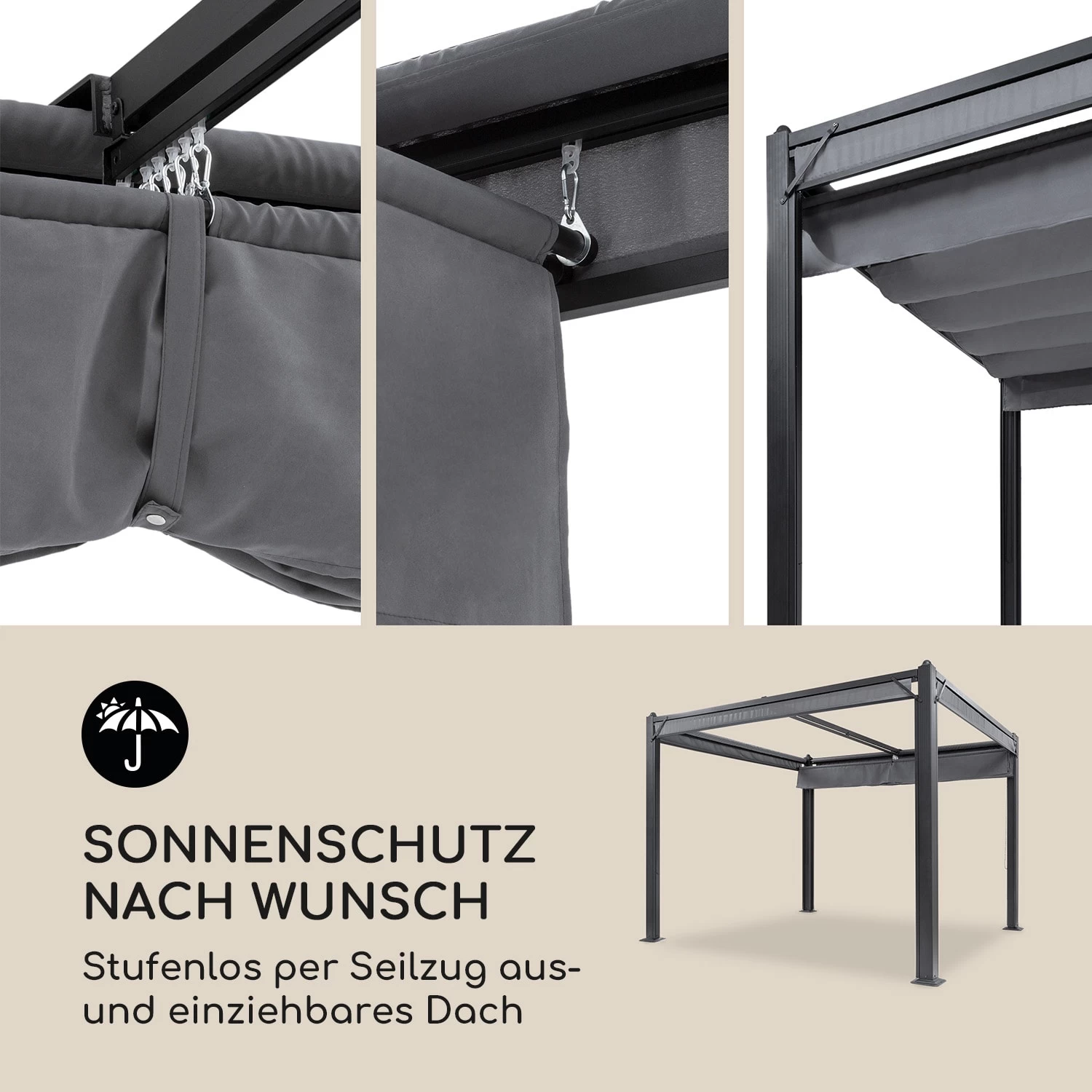Das flexible Ersatzdach für deine Pantheon Cortina Pergola von blumfeldt bietet dir kühlen Schatten und ein wärmendes Sonnenpanorama zugleich. Dank raffiniertem Seilzug-System kannst du es mit wenigen Handgriffen bequem auf- oder zuziehen, ganz nach deinem eigenen Behagen. Stufenlos kannst du es bedienen wie ein Sonnenrollo, während dir das wetterfeste Material mit Polyurethan-Beschichtung sogar Schutz vor Nässe bietet. Mit seinem robusten und wetterfesten Textil-Tuch ist das Ersatzdach eine langfristige Anschaffung und macht deinen Pavillon auch an Herbstabenden zu einem geschützten Wohlfühlort.